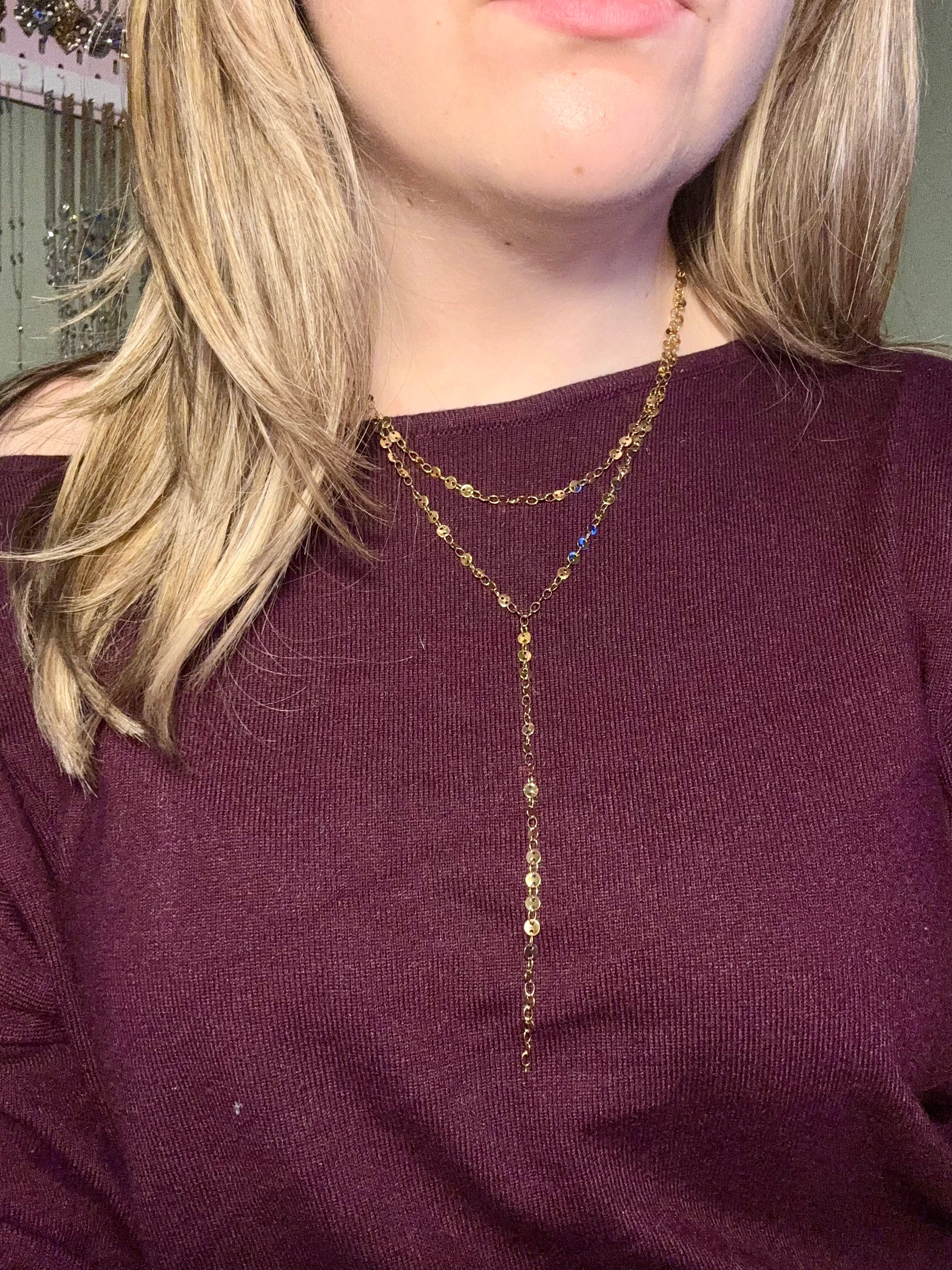 SEQUIN DOUBLE CHAIN Y NECKLACE